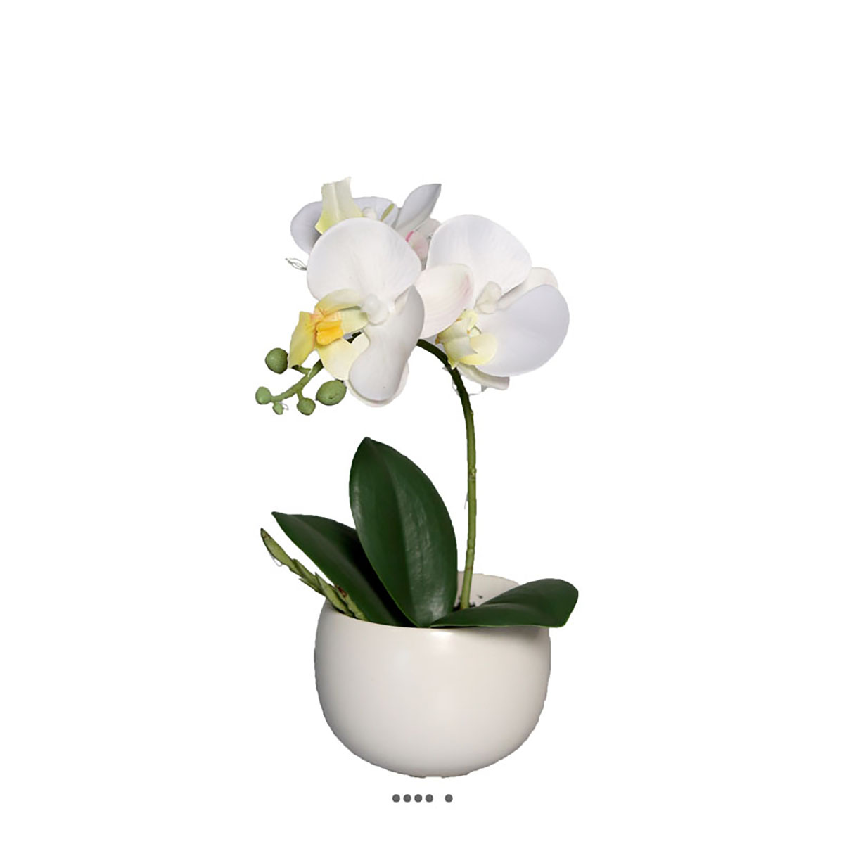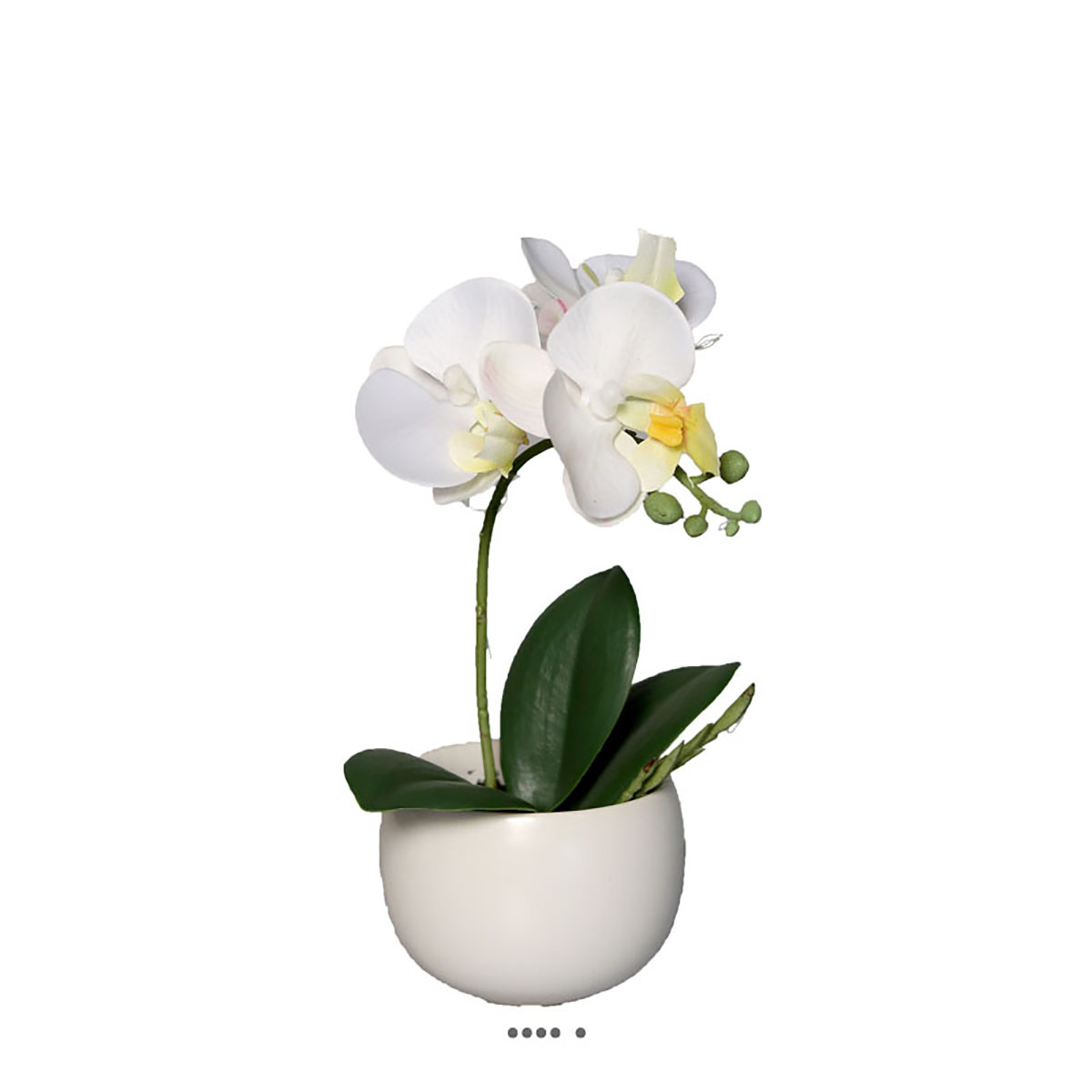Adorable fausse orchidée coupe céramique H 16 cm Crème