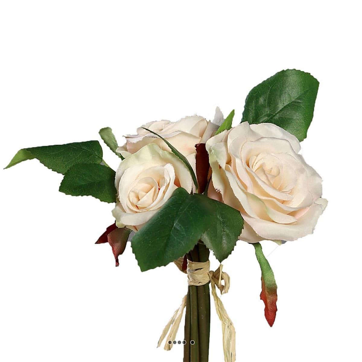 Adorable petit bouquet de fausses roses 3 têtes H 17 cm Crème