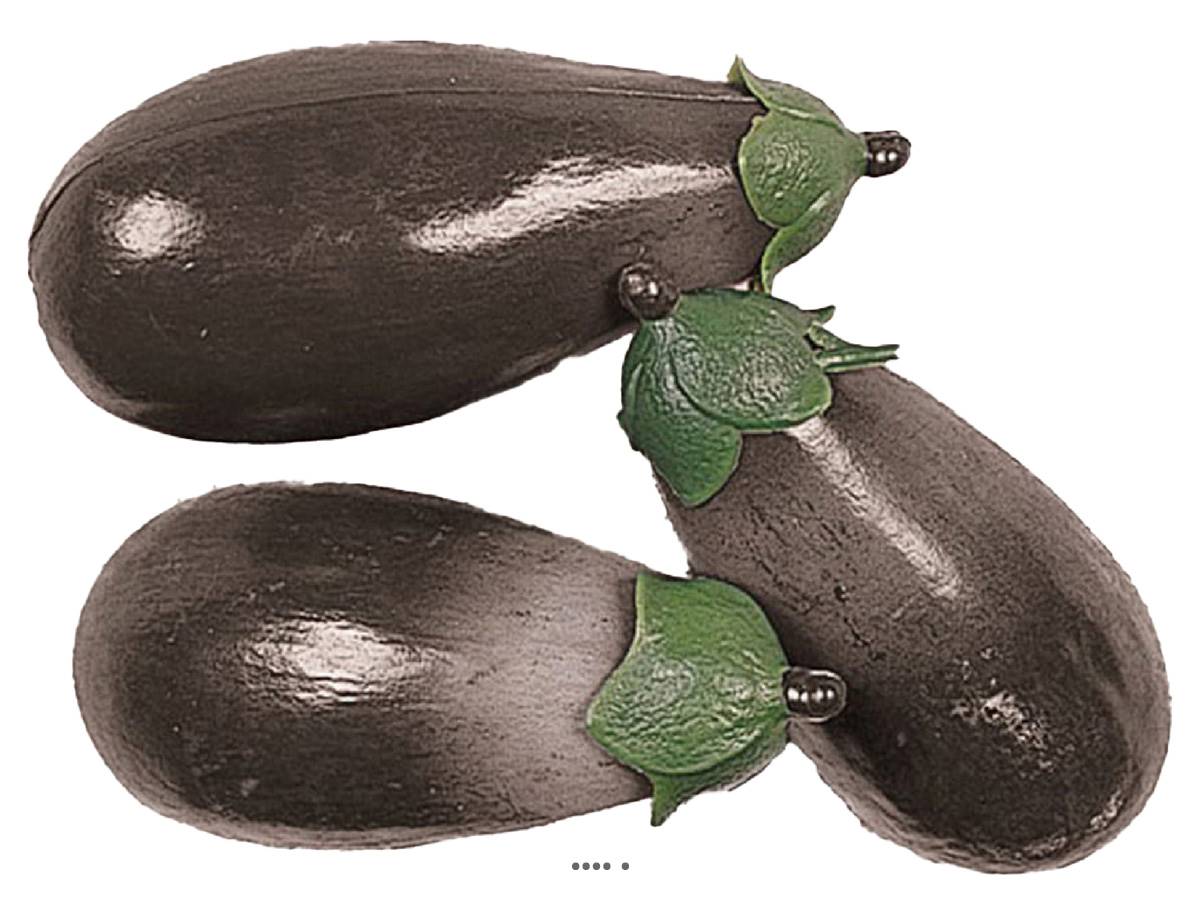 Aubergines artificielles en lot de 3 en Plastique soufflé L 135x60 mm. Livraison en 24/48 h possible - Livraison partout en France et en Europe - Expert dans l'Artificiel depuis plus de 10 ans - Service client disponible 5/7 jours - Livraison en 24/48 h pos