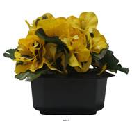 Bac carré fleurs artificielles Pensées Crème pour la Toussaint H 16 cm D 20 cm