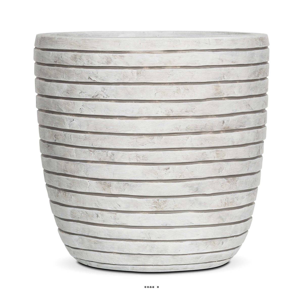 D'une très belle finission, ce pot couleur Ivoire possède de fine stries très légèrement ondulées qui viennent habillées sa forme.