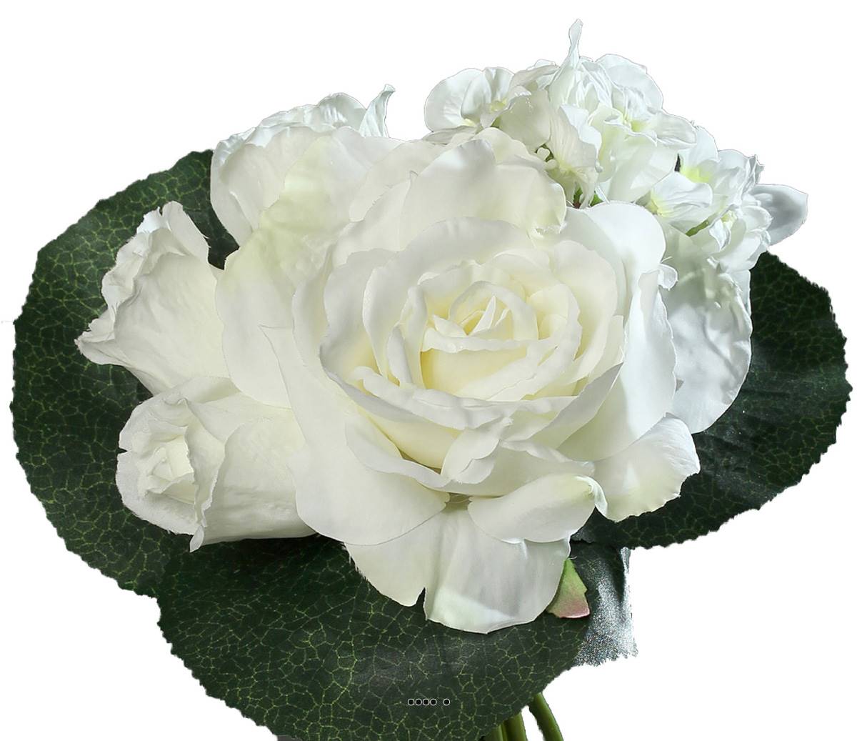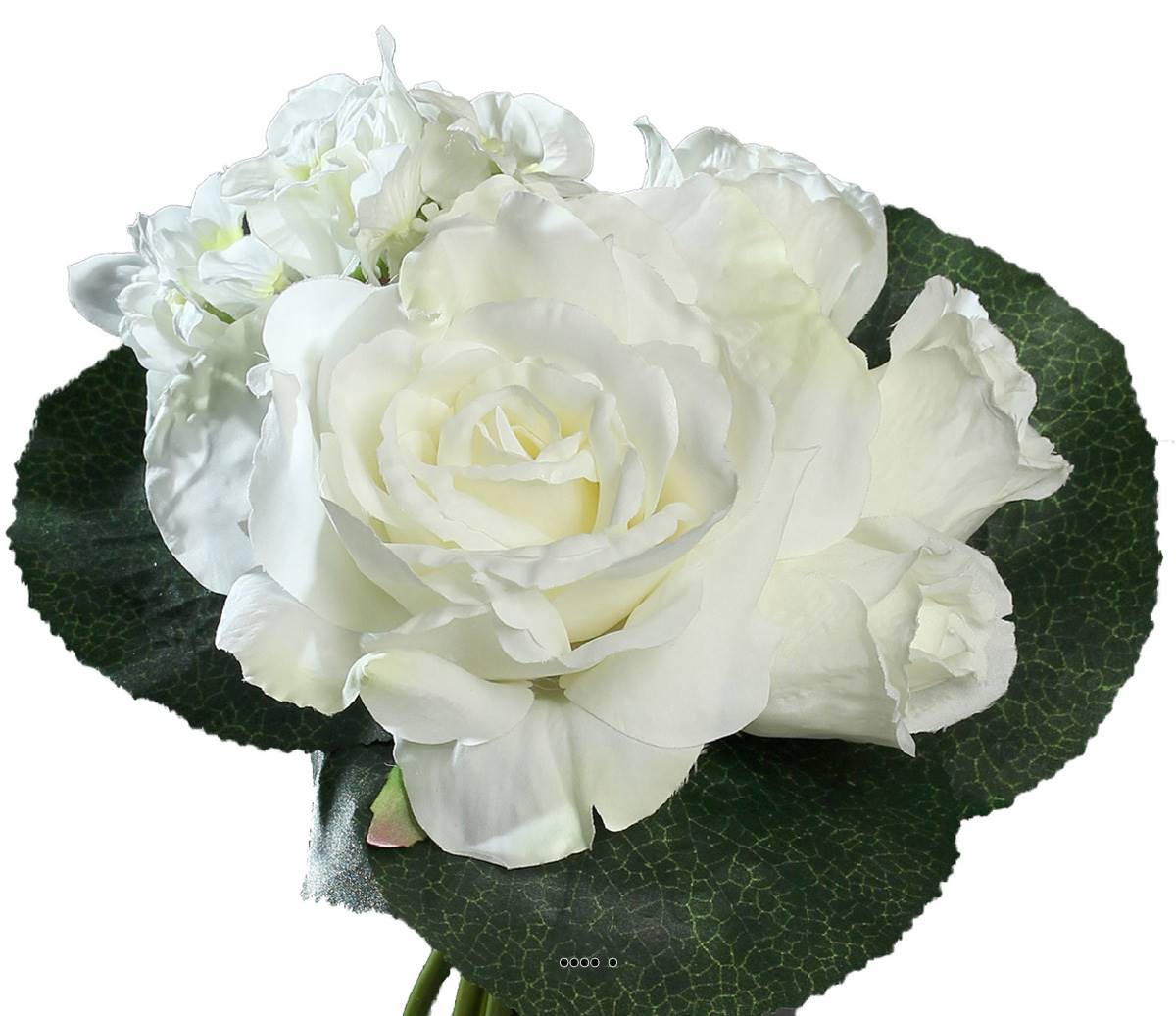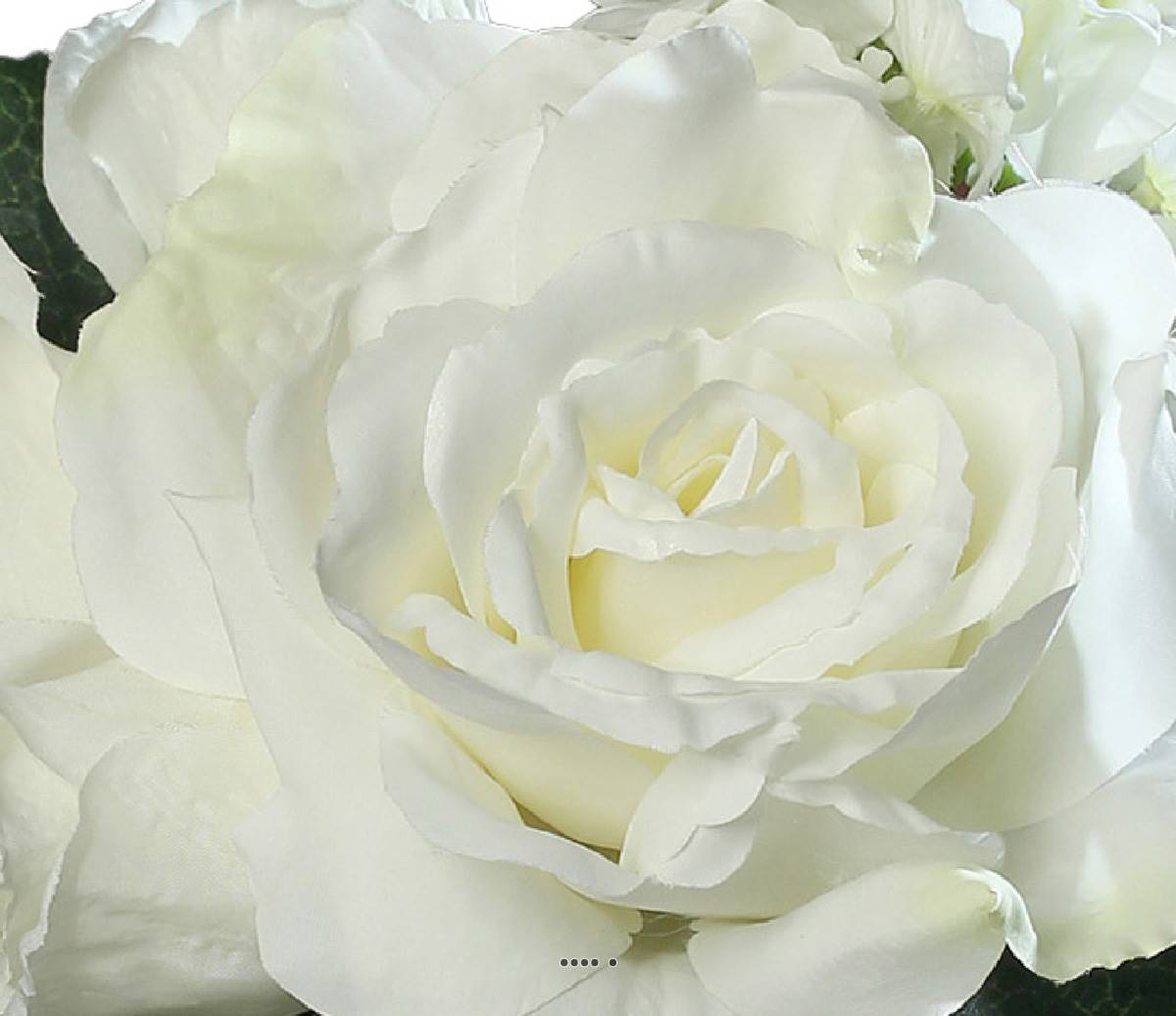 Bouquet varié de Roses et pivoine factices avec feuilles H25cm Crème