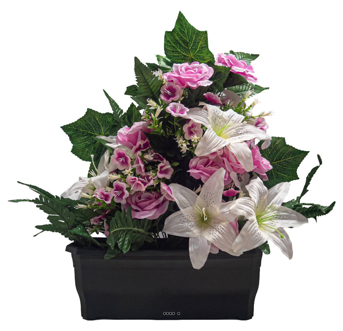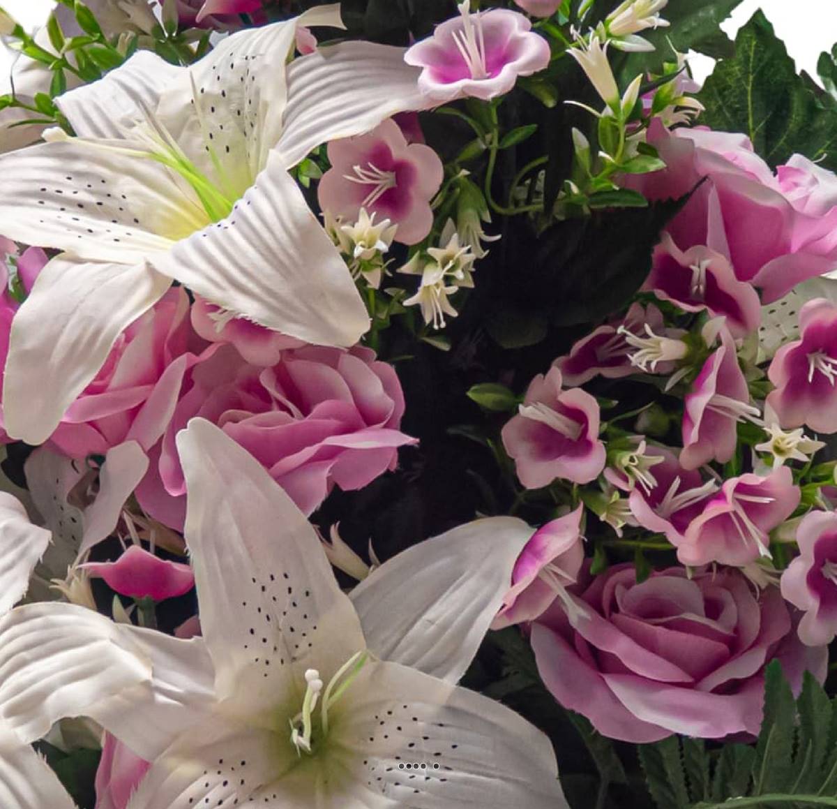 Devant de tombe fleurs artificielles pour le cimetière roses, mini-fleurs et lys H 60 cm Rose pâle