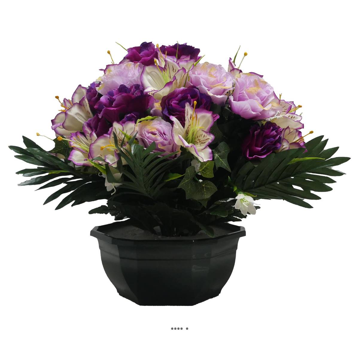 Grande Vasque de Roses fleurs artificielles pour le cimetière H 39 cm D 41 cm Pourpre