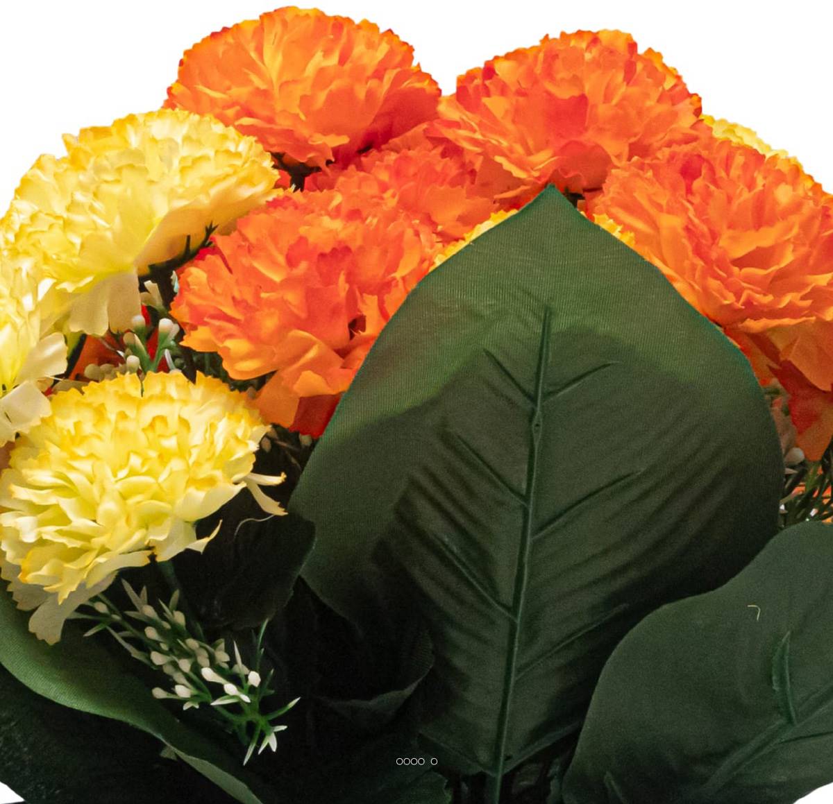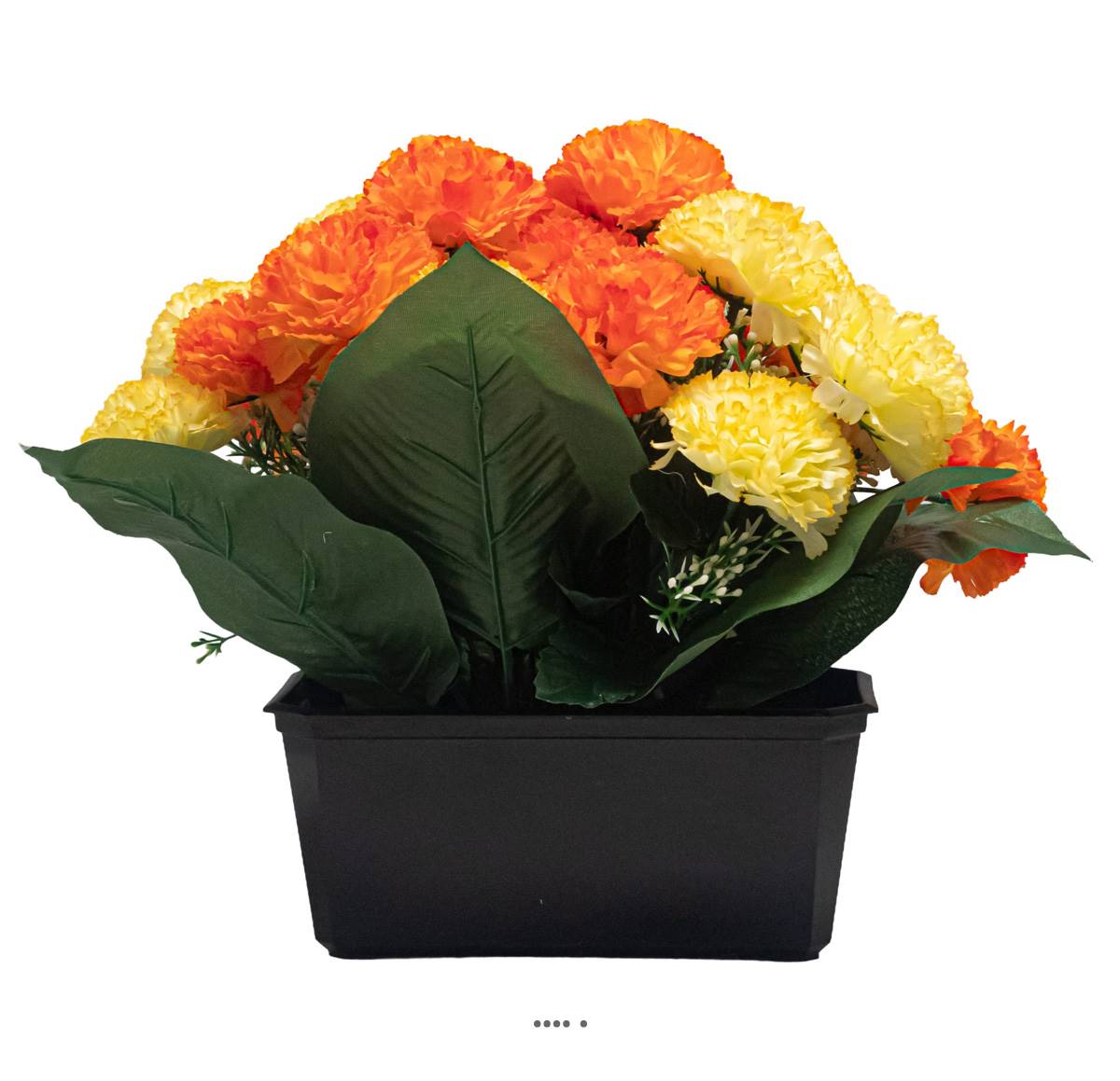 Jardinière fleurs artificielles pour les tombes Oeillets H 30cm Lg 45 cm Jaune-orange