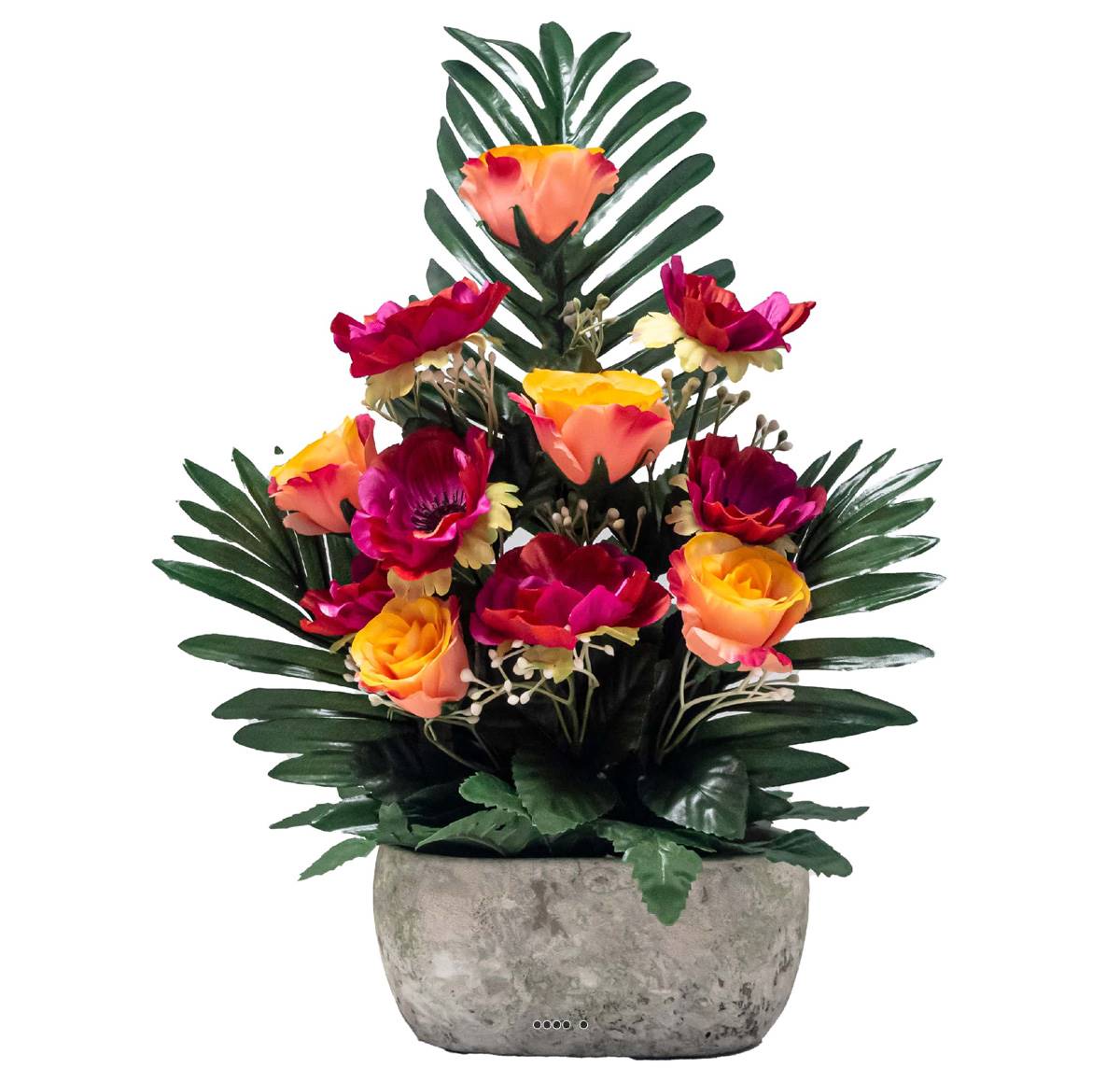 Diamètre du feuillage et des fleurs factices: 26 cm