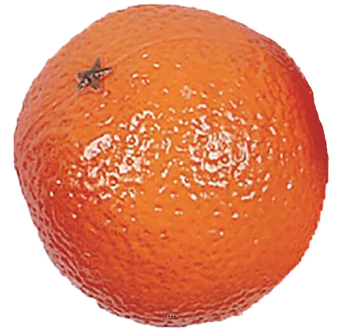Fausses oranges, fruits factices - Vendues en lot de 3 - Matière : Plastique soufflé - Dimensions : D 75 mm - Pour décorations et mises en scène, très réalistes. - Aliment factice imitant le réel