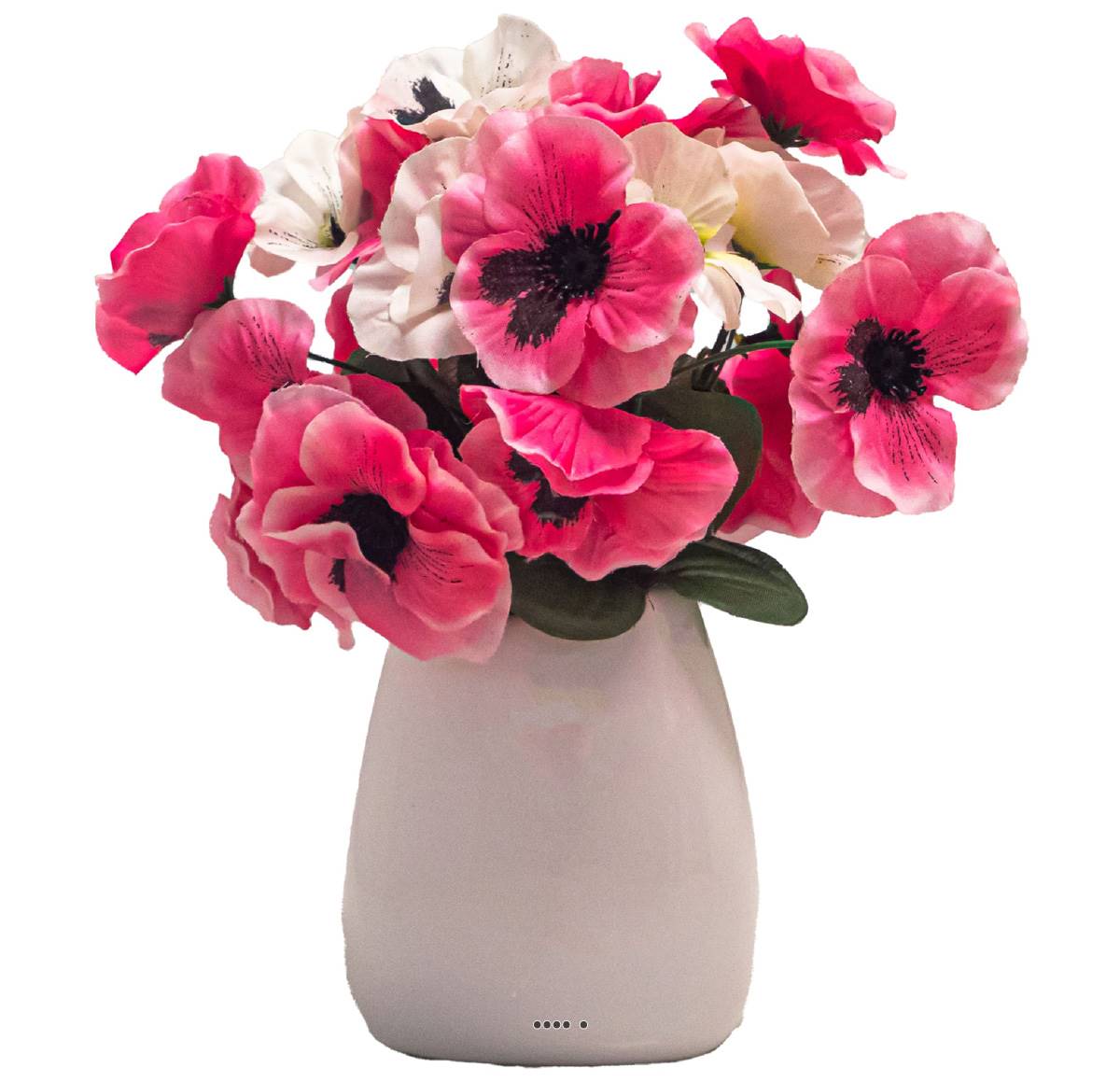 Pot céramique de fleurs artificielles Pensées pour le cimetière H 23 cm D 17 cm Fushia