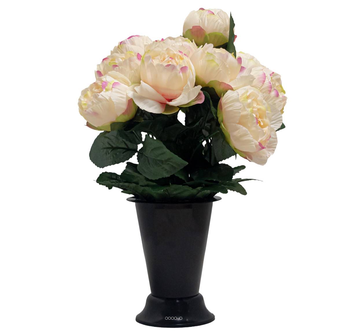 Pot Cône de Pivoines fleurs artificielles pour le cimetière H 37 cm D 30 cm Crème