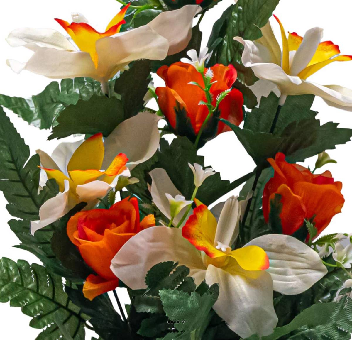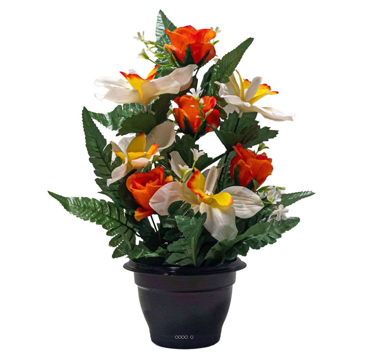 Pot d'Orchidées fleurs artificielles pour le cimetière H 36 cm D 28 cm Orange