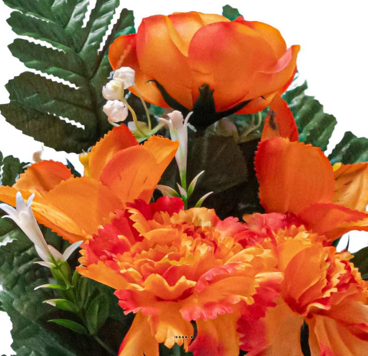 Pot de Boutons de Roses fleurs artificielles pour le cimetière H 34 cm D 23 cm Orange