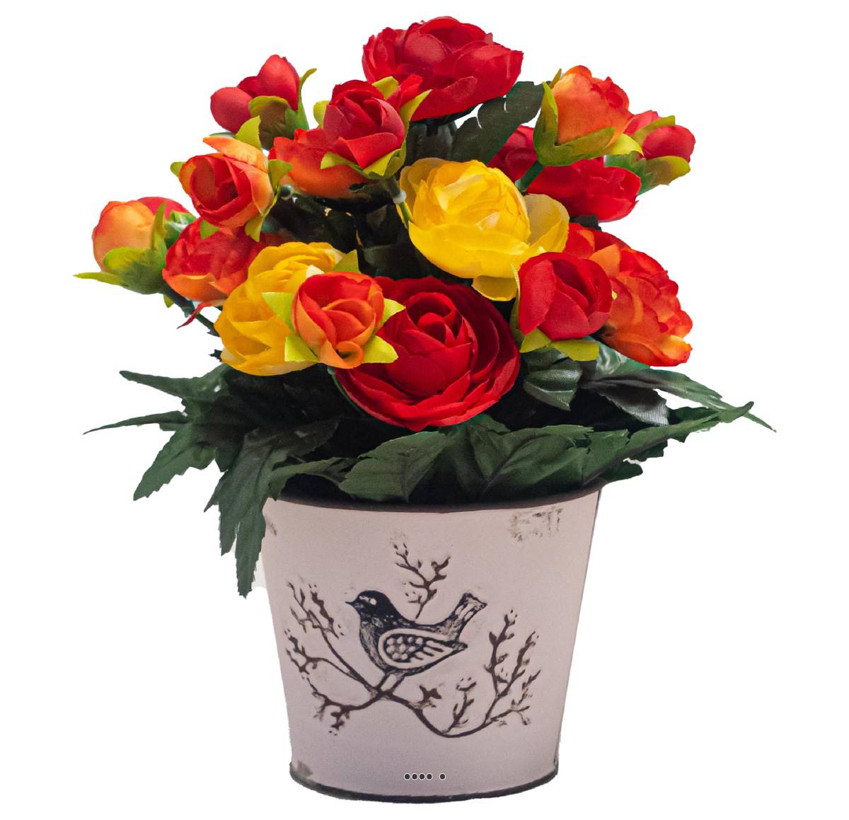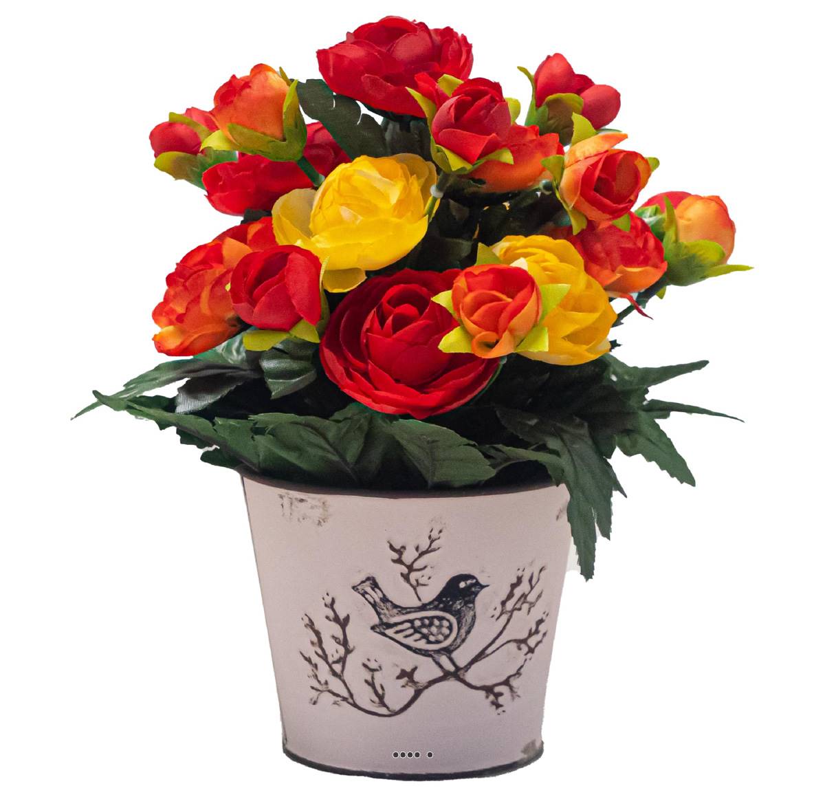 Pot de fleurs artificielles Renoncules pour le cimetière H 27 cm D 20 cm Orange