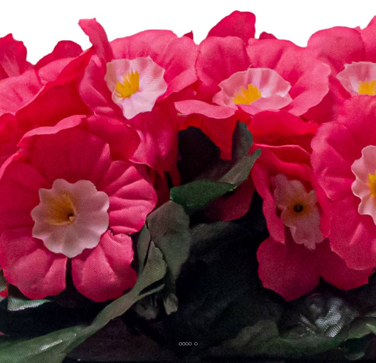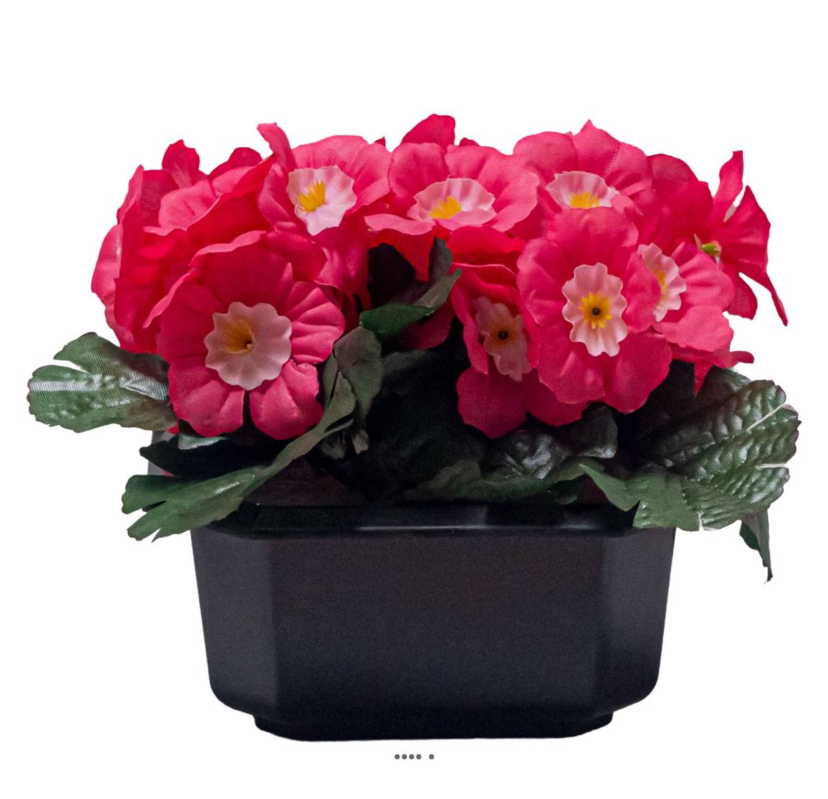 Vasque Carrée de Primevères fleurs artificielles pour le cimetière H 13 cm Lg 17 cm Fushia