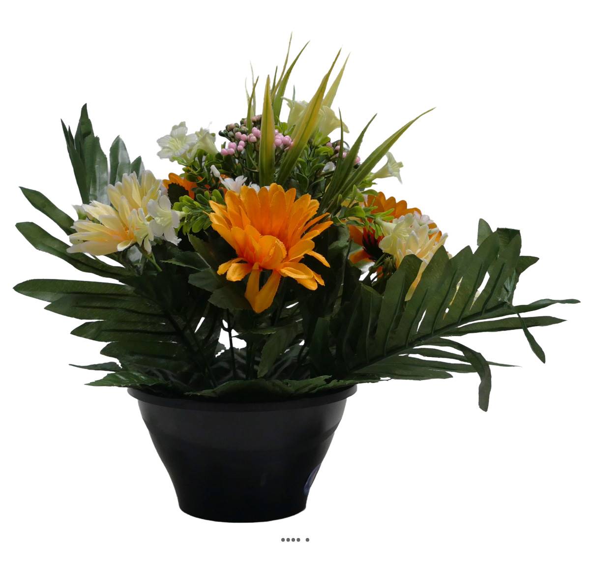Vasque de Gerberas fleurs artificielles pour le cimetière H 26 cm D 23 cm Orange