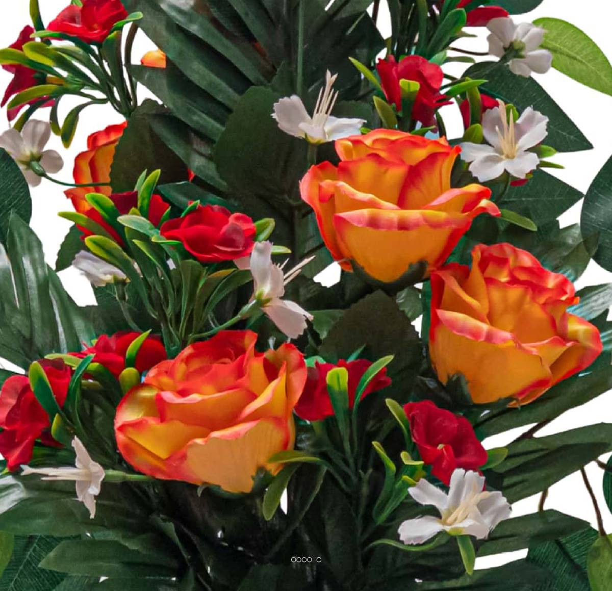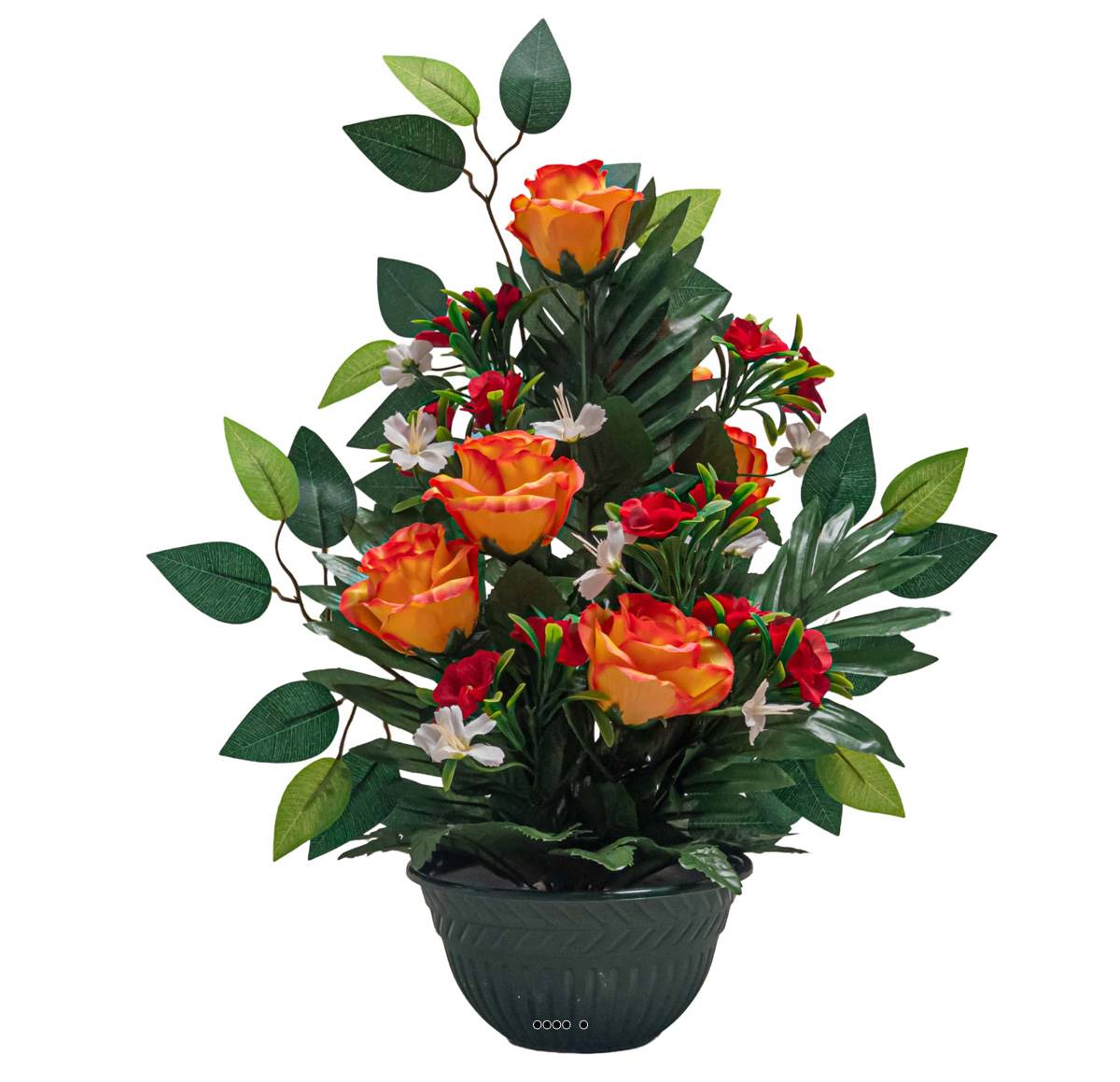 Vasque de Roses fleurs artificielles pour le cimetière H 50 cm D 35 cm Orange